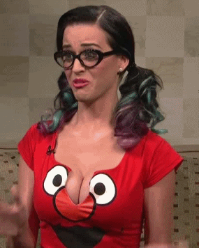 Katy isn't busty, but them tits are still nice. They appeared to be mashed down into the outfit she was wearing on Sesame Street, boobs are like that, they can be pushed and squished in wonderful ways. A push-up bra and squeeze 'em together and she has some nice cleavage on SNL.